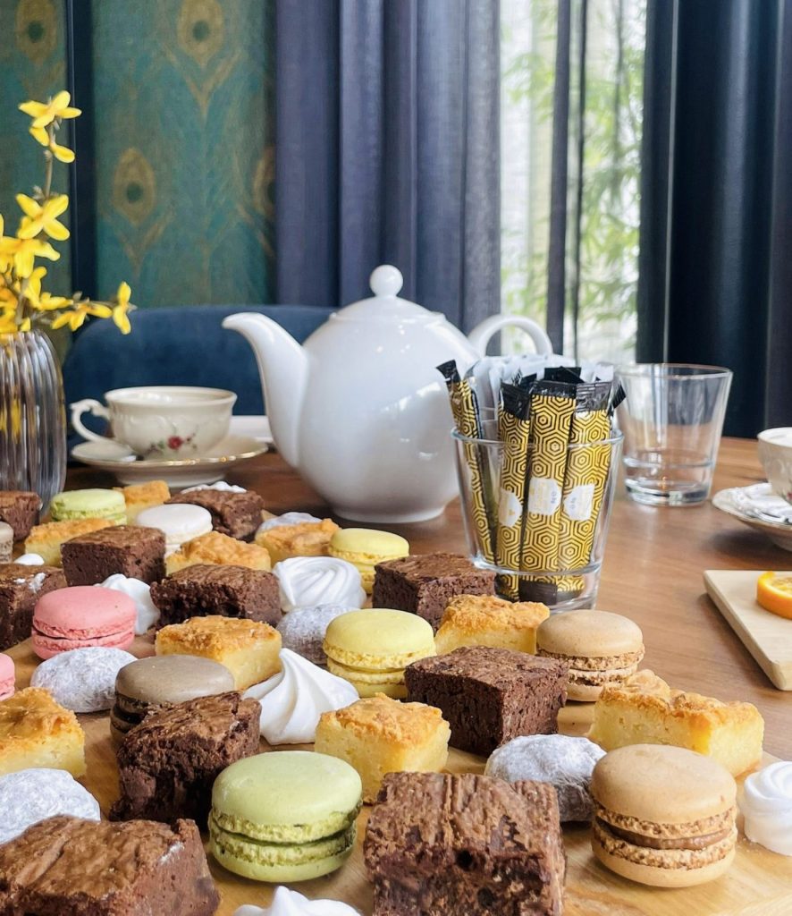 We starten met een hartige ronde, bestaande uit onder andere hartige sandwiches, quiches, warme broodjes en scones. Daarna sluiten we af met een zoete ronde: een feestelijke parade van zoetigheden om heerlijk van te genieten.